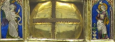 Si tratta di una tavola di legno di noce rivestita d’argento e smalto traslucido. Ha una cornice decorata e all’interno racchiude 32 caselle che contengono reliquie rinchiuse sotto lastrine di cristallo di rocca. Queste, a loro volta, si alternano a 31 piastrine smaltate, a mo’ di scacchiera. Se a queste ultime aggiungiamo le 20 della cornice, avremo 51 piastrine di smalto. Piccole reliquie sono racchiuse nella caselle rettangolari non smaltate, con la corrispondente etichetta identificativa. La provenienza delle stesse è diversa. Le reliquie non sono in vista, meno il frammento del lignum crucis.