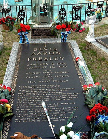 En Graceland, no sólo está la casa de Elvis, sino también su tumba. En el Meditation Garden la podemos visitar junto a la de sus familiares. Inicialmente estaban en el cementerio de Forest Hill, junto a la de su madre, pero fueron trasladadas a Graceland después de un fallido intento de robo de su cuerpo, a sólo pocos días de su muerte.