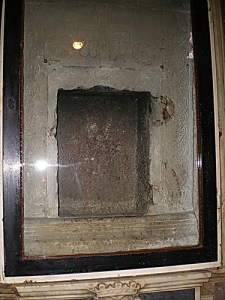 Esta piedra, según estudios recientes, sería un fragmento de un altar paleocristiano del siglo VI con restos de barniz rojo y cera (???).