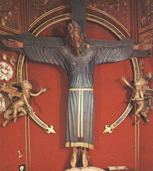 El Santo Rostro de Lucca (Italia) podría ser el prototipo de una serie de imágenes talladas en madera que representan a Cristo crucificado presentes en determinadas partes de Europa en época románica, siglos XI-XIII, o anterior. Véanse, por ejemplo, los crucifijos denominados ‘Majestats’ de Cataluña, como los de Battló (MNAC, Barcelona) o de Caldes de Montbui (Barcelona). Esta tipología de imágenes presenta un Cristo triunfante en la cruz, con los ojos abiertos, sin la corona de espinas, con túnica regia, que se contrapone a la del Cristo semidesnudo, sangrante y sufriente que exhala su último respiro o que acaba de morir. La cruz ya no sería símbolo de sufrimiento y suplicio sino de victoria sobre el mal y la muerte.