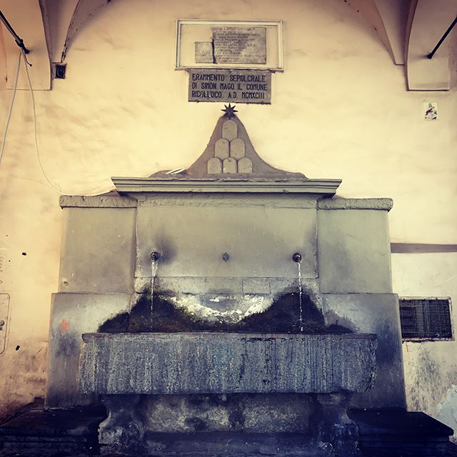 Fontana delle tre cannelle, Ariccia (Roma). Nella parte superiore, quel che resta della lapide del monumento sepolcrale di Simon Mago