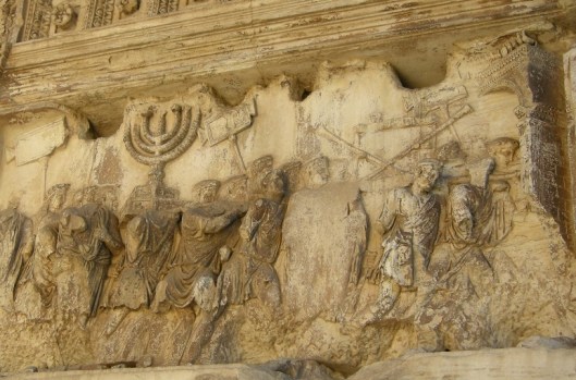 La scala sarebbe stata portata a Roma dall’imperatrice Elena. Un’altra versione della tradizione ci dice che fu portata a Roma dagli imperatori Vespasiano (69-79) e Tito (79-81) dopo la distruzione di Gerusalemme. Questa leggenda si basa su uno dei bassorilievi dell’Arco di Tito, dove si rappresentano le spoglie del tempio di Gerusalemme portate a Roma dopo la distruzione del 70 d.C..