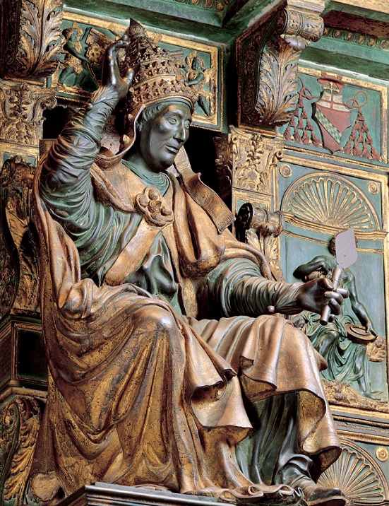 En la basílica de San Pedro puede admirarse la estatua de bronce de Pollaiolo, que representa al pontífice Inocencio VIII que con una mano sostiene la Santa Lanza y con la otra imparte la bendición.