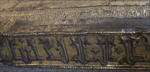 Arca Santa. Particolare del coperchio, dove possiamo vedere chiaramente l’iscrizione latina e quella araba in caratteri cufici