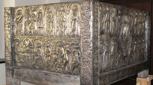 Quindi: nel 1072 viene costruita l’arca per contenere le reliquie esistenti nella cattedrale la cui origine è sconosciuta; questo dà adito alla costruzione e divulgazione di una storia intorno all’esistenza di un’arca preesistente che fu poi raccontata in due versioni simili ma che attingono da un unico documento; queste due versioni inseriscono parte delle reliquie che esistevano nell’arca del 1072 e ne aggiungono delle altre (vere o false). La cerimonia nella quale fu riaperta l’arca, nel 1075 è, invece, sicuramente autentica. Il re, di passaggio ad Oviedo, volle vedere le reliquie che conteneva l’arca che aveva patrocinato.