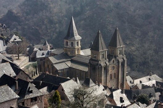 Conques es una localidad muy pintoresca situada en Occitania, en el Sur de Francia. Su fama, qua ahora se basa tanto en la importancia artística del complejo, como en su situación por ser un punto estratégico como centro de peregrinaciones, comenzó justamente por la presencia de las reliquias de Santa Fe que llevaron a la fama al casi anónimo primitivo monasterio.