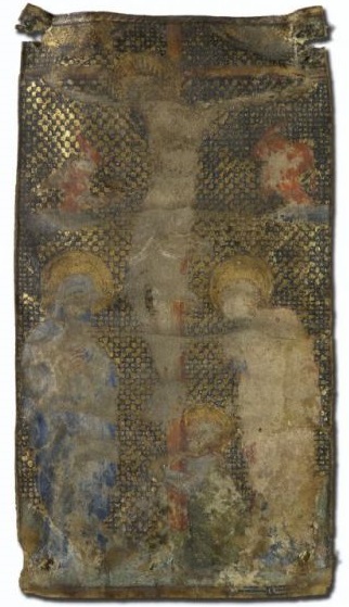 Las dos caras extremas de las hojas están decoradas con flores de lis de Francia dentro de losanges, en oro sobre fondo oscuro. Las reliquias de la pasión de Cristo procederían de Constantinopla y habrían llegado a Europa como consecuencia del saqueo de esa ciudad llevado a cabo por los Cruzados en la IV Cruzada o serían una parte de las reliquias que el rey Luis IX de Francia compró en 1247 al emperador latino de Constantinopla, Balduino II, junto con la Corona de Espinas.