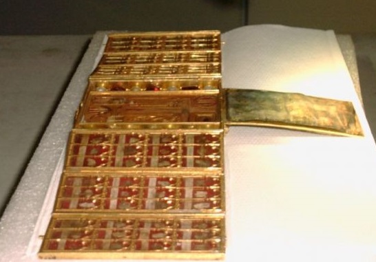 El ‘librillo’, es decir el relicario interior, pertenece a una tipología de relicarios llamado ‘de tablas’, destinado a la devoción privada, adecuado también como relicario ‘de viaje’. Comisionado por Carlos V de Francia (segunda mitad del siglo XIV) y realizado en el país galo, es un minúsculo políptico de oro de 7,5 cm de alto, formado por una parte central fija a partir de la cual se articulan seis hojas, tres por lado, que se cierran como un librillo. Abierto mide unos 24 cm.