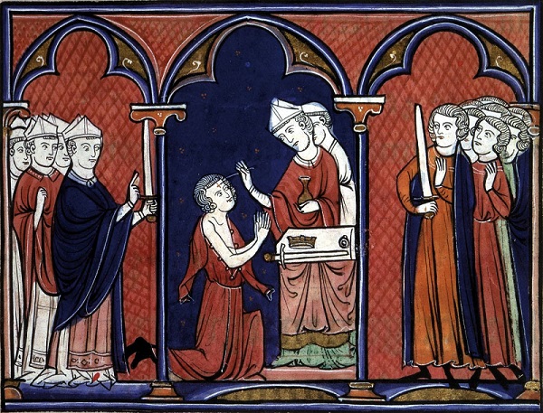 El mito o la leyenda comienza con el bautismo en el 496 del rey Clodoveo (466-511) por parte del obispo de Reims, Remigio, posteriormente canonizado. Clodoveo, rey de los Merovingios y ‘fundador’ de las sucesivas dinastías francesas, se convertía al cristianismo niceno tras su bautizo (es decir según las resoluciones del Concilio de Nicea1 contra el arrianismo). Y esto implicó, al mismo tiempo, una gran victoria de la Iglesia ‘oficial’ y una gran derrota del arrianismo.