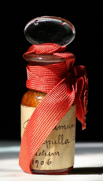 En el momento de la consagración se sacaba una pequeña parte del bálsamo con el alfiler del relicario y se mezclaba con santo crisma sobre una patena. Una vez terminada la ceremonia, la parte que quedaba de la ‘mezcla’ se volvía a meter en la ampolla.