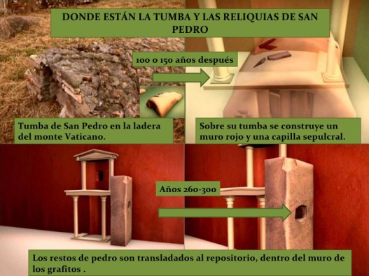 Como las cajas chinas: un altar dentro de otro, construidos sobre el famoso templete con el muro rojo, con dos columnas, construido, a su vez, sobre el primer monumento de Pedro. Parece obvio pensar que una razón de peso tenía que haber empujado a Constantino a construir la basílica justo en aquel lugar, sobre un cementerio pagano de familias importantes y sobre parte del espacio ocupado por el Circo Vaticano. Sin embargo, hasta el siglo XX, no existían pruebas o documentos que demostraran que la tumba de Pedro estuviera bajo el altar papal de la basílica, como siempre había afirmado la tradición. En 1939, con la llegada al pontificado de Pío XII se iniciaron bajo la basílica de San Pedro unas excavaciones que duraron unos 10 años. Estas excavaciones sacaron a la luz no solo una interesantísima necrópolis romana, sino también la tumba de San Pedro. ¿Y sus reliquias?
