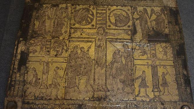 Se trata de una excepcional obra de orfebrería del siglo XI realizada en un taller de León y su importancia llegó a ser tal como para convertirse en objeto de devoción por sí mismo. Las láminas de plata que la recubren están trabajadas con las técnicas del niel, del cincelamiento, repujadas y doradas, con iconografía cristológica.
