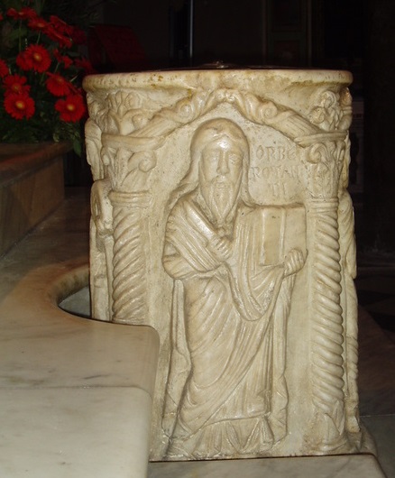 En la nave central, justo en el medio de las gradas que llevan al altar mayor, hay un magnífico pozo del siglo XI, ya en desuso, de tan solo 80 cm de alto y recabado a partir de los restos de una columna romana. Este pozo habría sido construido en lugar de otro ya existente en el templo de Esculapio, a cuya agua se le presuponía poderes curativos. Entre los cuatro personajes esculpidos en bajorrelieve alrededor del pozo también hallamos a San Bartolomé, representado con un libro y un cuchillo en las manos, como símbolo de su martirio.