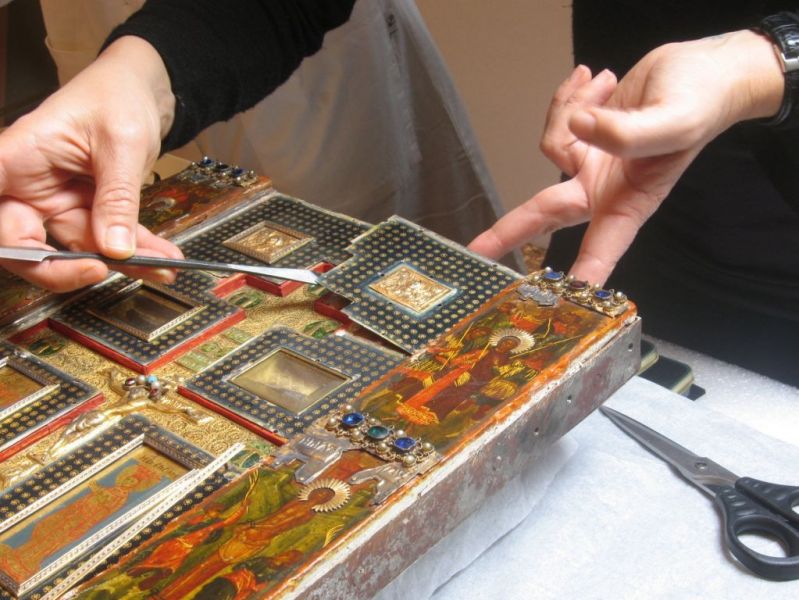 Cardinale Bessarione, Gallerie dell’Accademia, Gregorio III Mammas. Giovanni VIII Paleologo, Irene Paleologina, Opificio delle Pietre Dure, reliquiari, Reliquie, Scuola Grande di Santa Maria della Carità, Stauroteca Bessarione, Venezia