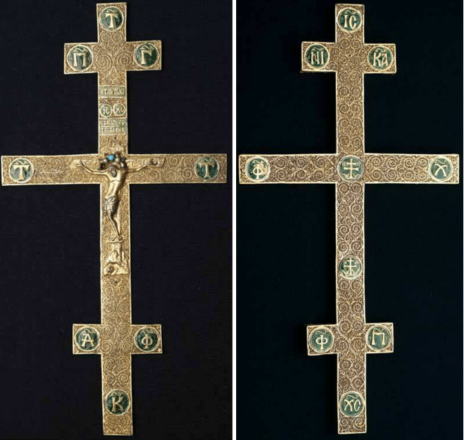 2.- Irene Paleologina era figlia di Demetrio Paleologo, a sua volta fratello di Michele IX (1294-1320), co-imperatore con suo padre Andronico II il Paleologo (1282 y 1328). L’iscrizione recita: “Eirene Palaiologina, figlia del fratello dell’imperatore, decora con argento l’immagine mondialmente venerata della croce, per la salvezza ed il perdono dei peccati”.
