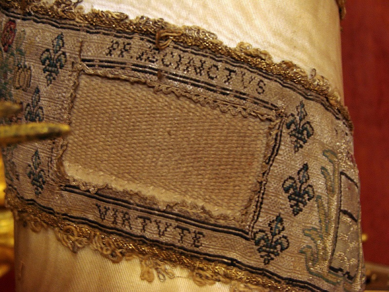 El cíngulo, visible a través de doce pequeñas aperturas rectangulares o ventanitas, mide aproximadamente un metro y medio y tiene unos cuatro centímetros de ancho. Está hecho con un tejido crudo de color grisáceo. La funda de seda que lo contiene mide un metro cincuenta por diez cm y muestra los emblemas de Joinville. Tiene frases bordadas que describen las virtudes de San José, y unas azucenas, también bordadas. En los extremos se exhiben botones y está sellado con un broche de marfil, o hueso. Después de la llegada de esta reliquia se habría desarrollado el culto a San José en esta región.