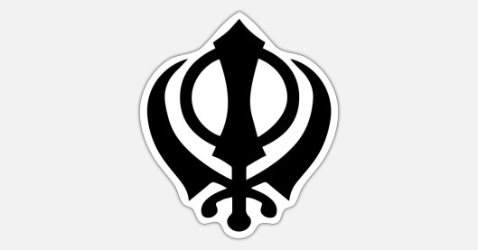 El símbolo más importante del sijismo es el «Khanda», que representa el poder creativo universal y toma su nombre de la espada de doble filo que se encuentra en el centro, símbolo del Conocimiento Divino; el círculo simboliza el infinito; las dos espadas exteriores representan el equilibrio espiritual y temporal del universo.