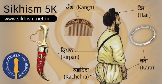 5) kirpan (espada ceremonial, que hoy en día se destaca como símbolo religioso de fortaleza y lucha contra la injusticia, no como arma)