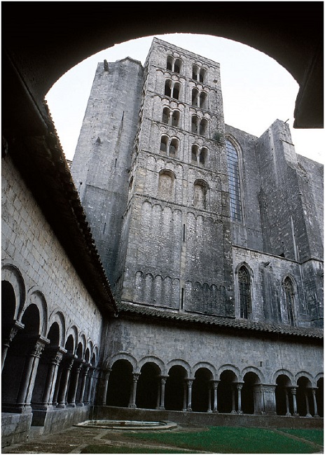 El templo primitivo, que los musulmanes transformaron en mezquita, fue nuevamente destinado al culto cristiano. La catedral, iniciada en el siglo XI en estilo románico, es actualmente el resultado de diversas intervenciones, por lo que en ella se encuentran presentes varios estilos arquitectónicos. El campanario románico del siglo XI es también conocido como la Torre de Carlomagno. Cuenta la leyenda que, en un frío día de invierno, el emperador decidió subir a la torre para contemplar el paisaje nevado. Pero al asomarse, Joyeuse (la Joyosa), su famosa espada, cayó desde la torre y se clavó en la tierra en el centro del claustro. La espada no pudo ser recuperada porque empezó a hundirse hacia el centro de la tierra… y aún sigue descendiendo, y cuando llegue al otro lado del globo, ¡la tierra se dividirá en dos provocando el fin del mundo!