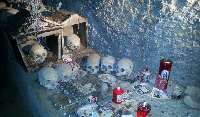 Cuando descendemos al hipogeo —a este pequeño Purgatorio— vemos a lo largo de las paredes nichos, pequeños altares y vitrinas dedicadas a estas ánimas pezzentelle. Cada cráneo tiene su nombre y su historia, nacidos de la imaginación de quien lo cuida. Entre todos, el más famoso es el cráneo de Lucía, con una preciosa corona y un velo de novia.