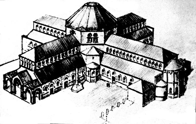 Le Catacombe dei Santi Marcellino e Pietro sulla Casilina, note anche come Catacombe di Sant’Elena o Catacombe di San Tiburzio, si svilupparono tra il II e il III secolo d.C. L’ingresso si trova presso la chiesa dei Santi Marcellino e Pietro ad Duas Lauros che, insieme al mausoleo di Sant’Elena5, ad una basilica imperiale oggi sepolta, e ai resti di un antico sepolcreto appartenuto agli Equites Singulares (la guardia del corpo personale dell’imperatore), formavano un complesso chiamato “Ad duas lauros” (“ai due allori”), forse a causa della presenza di due alberi di alloro nei pressi del sito. Oggi questo complesso monumentale, di straordinario valore, è composto dalle catacombe, dal mausoleo di San’Elena e dalla chiesa. I Ss. Marcellino e Pietro, l’uno presbitero e l’altro esorcista, furono martirizzati all’epoca delle persecuzioni di Diocleziano e poi sepolti in queste catacombe presso il martire Tiburzio, figlio di Cromazio prefetto di Roma. I corpi dei due santi rimasero nella cripta sotterranea fino all’anno 826, quando furono rimossi e trasportati in Germania, dove ancora si venerano.