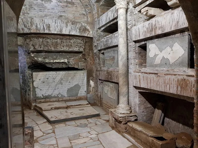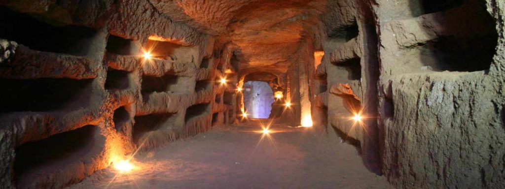 Catacombe cristiane, Catacombe dei Santi Marcellino e Pietro, Catacombe di Domitilla, Catacombe di Priscilla, Catacombe di San Callisto, Catacombe di San Sebastiano, Catacombe di Sant’Agnese, Catacombe di Vigna Randanini, Catacombe ebraiche, Ipogei degli Aureli, Ipogeo di Via Dino Compagni, Ipogeo di Via Livenza
