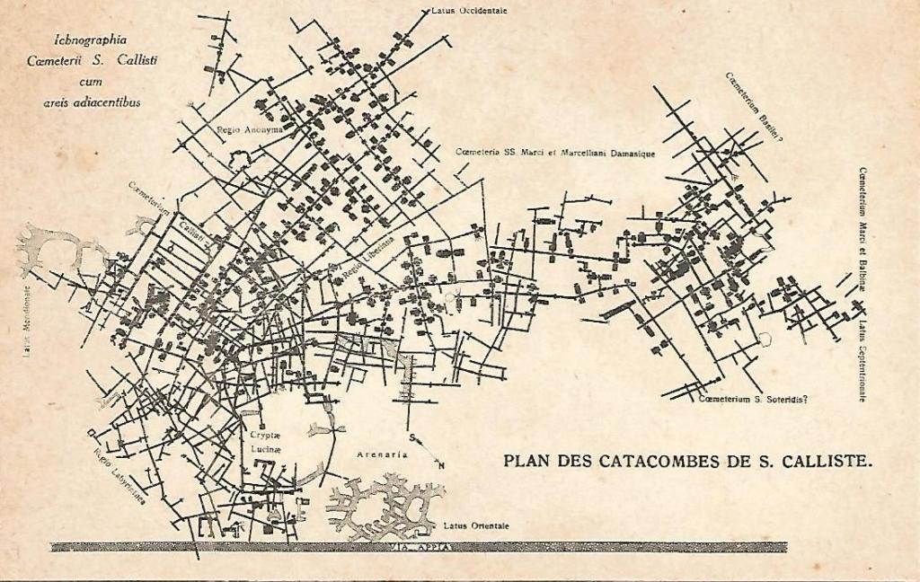 Fra queste, forse la piú importante è quella di Vigna Randanini6, nella zona dell’Appia Antica, scoperte verso la fine del XIX secolo. Sempre nella stessa zona, ci sono quelle di Vigna Cimarra. Altre catacombe si trovano nella zona della Via Casilina, nella Vigna Apolloni, e altre ancora sono quelle di Monteverde, vastissime, e poi quelle di villa Torlonia, in Via Nomentana, le ultime ad essere state scoperte (1919).