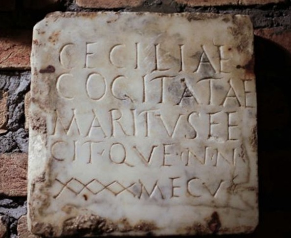 1.- Si tratta di una copia. L’originale è nella basilica omonima a Trastevere così come le spoglie della martire, inizialmente sepolta nelle catacombe.