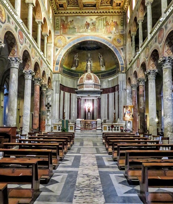 4.- Questa chiesa, intitolata ai martiri Nereo e Achilleo è anche detta ’in fasciola’, ossia, ‘benda’ in latino. Ricorda quando San Pietro scappò dal carcere Mamertino per uscire dalla città. La grossa catena che gli era stata messa intorno alla caviglia aveva lasciato una ferita sulla quale aveva posto una benda. Quando arrivò nei pressi della zona che ora occuapano le Terme di Caracalla, che allora ancora non esistevano, la benda si sciolse e cadde. Sarebbe stata raccolta da una matrona romana che l’avrebbe conservata a casa sua. Questa casa cominciò subito a chiamarsi Titulus fasciole e, nel IV secolo, sullo quello stesso luogo venne costruita l’attuale chiesa intitolata ai martiri Nereo e Achilleo, detta appunto ‘in fasciola’, dove è ancora conservata questa reliquia.