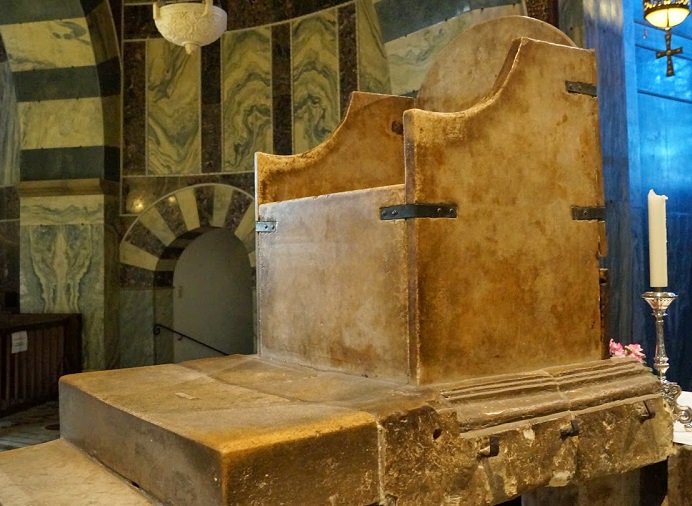 Trono di Carlo Magno. Nel suo interno ci sono scomparti che contenevano diverse reliquie
