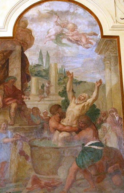 San Juan es introducido en el aceite hirviendo. L. Baldi (1624-1703). San Giovanni in Oleo