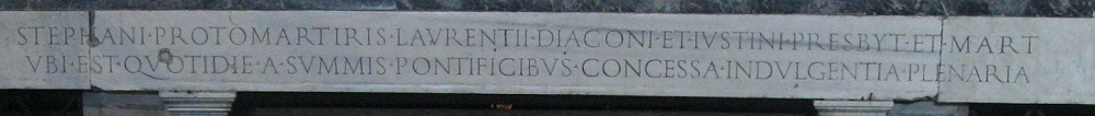 (6) En la cripta se encuentra también el cuerpo de San Esteban, protomártir y primer diácono. Según la tradición, su cuerpo fue sucesivamente enviado desde Jerusalén a Constantinopla y desde esta ciudad a Roma, durante el pontificado de Pelayo II (579-590), directamente a la basílica de San Lorenzo extramuros. Allí fue colocado al lado del otro gran diácono, San Lorenzo, y de San Justino, mártir romano. Lo confirma también una inscripción en el arquitrabe de entrada a la cripta.