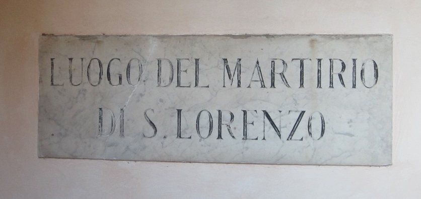 El emperador, sintiéndose burlado, cambia de idea y decide agravar su condena. Primero lo manda flagelar y luego a morir quemado sobre una parrilla, pero no a fuego vivo, sino con carbones ardientes colocados bajo la misma parrilla, para alargar el suplicio. Una vez tendido y atado a la parrilla Lorenzo es poseído por una luz divina y después de un tiempo advierte a su verdugo que ya estaba asado por un lado para que le diera la vuelta hasta que estuviera listo para ser comido. No tarda en morir. Tenía unos treinta años y era el 10 de agosto del año 258. En el lugar de su martirio, que está a pocos pasos del de su cautiverio, se construye la iglesia de San Lorenzo in Panisperna, donde un gran fresco en la pared del ábside representa el martirio del santo, realizado en 1589 por Pasquale Cati da Iesi. En una capilla bajo el nivel de la iglesia y con entrada independiente encontramos una suerte de horno empotrado en la pared con una inscripción que dice ‘Locus martirii Sancti Laurentii’, y como si no estuviera bastante claro, un poquito más allá en la misma pared hay una placa con la inscripción ‘Luogo del martirio di San Lorenzo’.