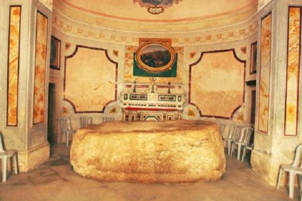 En la segunda mitad del siglo XVIII los franciscanos construyeron una capilla que posteriormente se convertiría en la actual iglesia en 1861, que fue restaurada en ocasión de las celebraciones del segundo milenio. Sobre la roca, que actualmente se utiliza como altar, pueden observarse numerosos grafitos dejados por los peregrinos. Un letrero en latín explica de lo que se trata y una pintura en la pared posterior representa la escena.